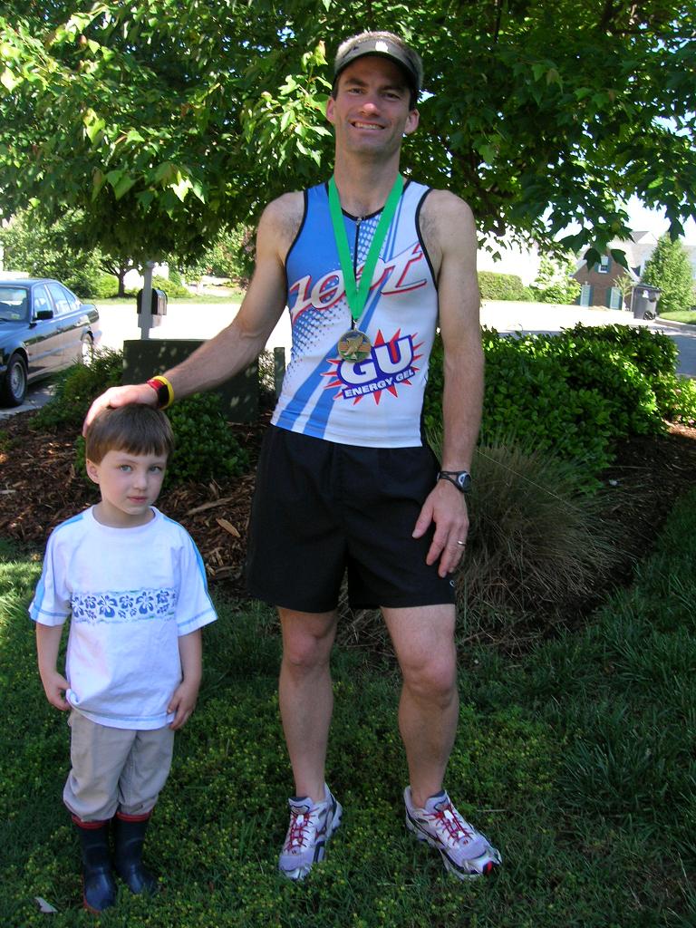 My first podium finish, and a 5k PR. I think I could do better than this, but when I realized I was going to go under 20, I eased off some. Especially in mile 2, when I passed Travis (of course, he WAS pushing the jogging stroller!)